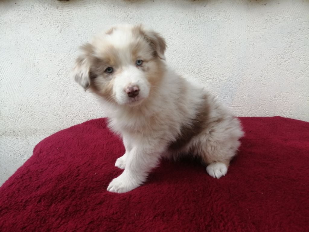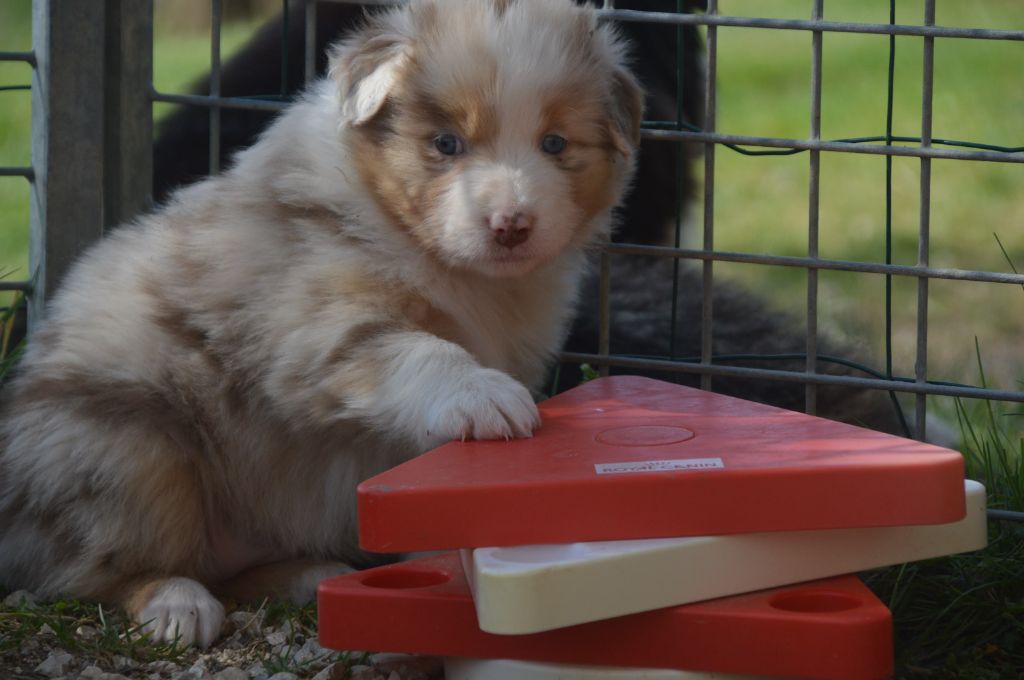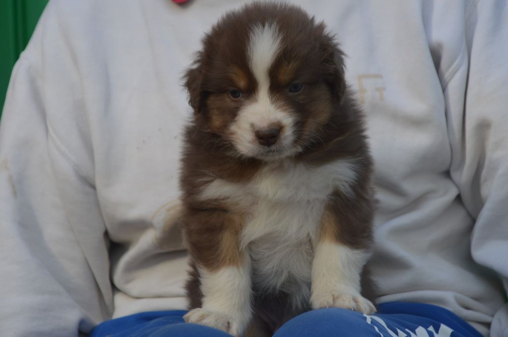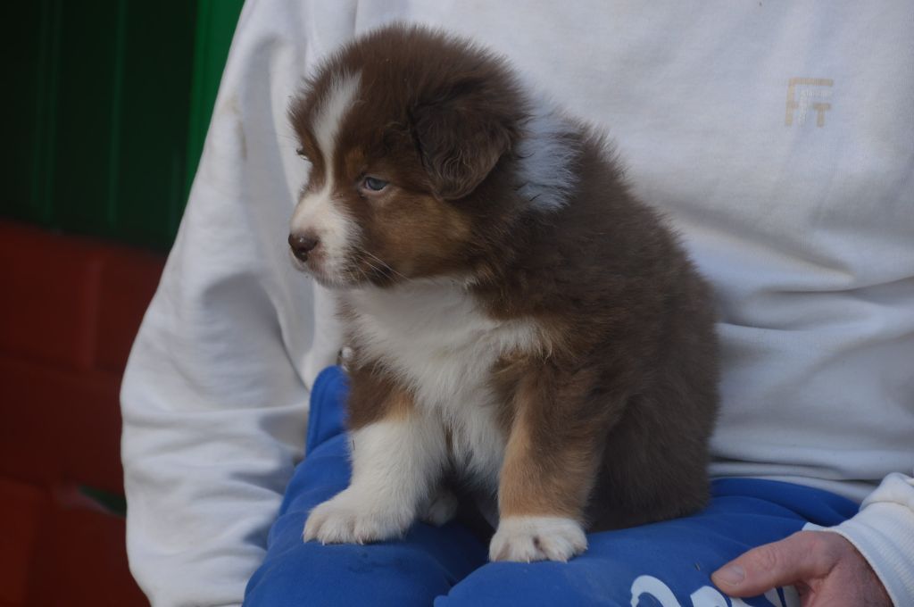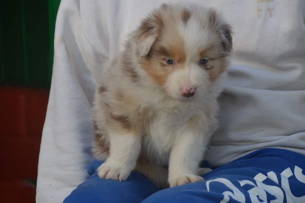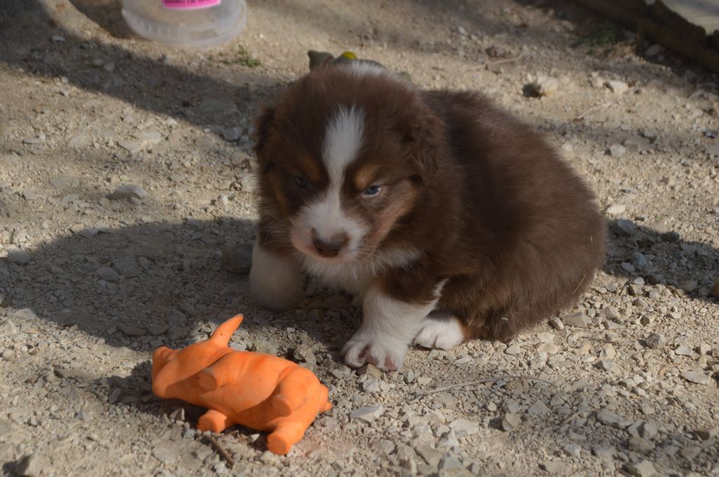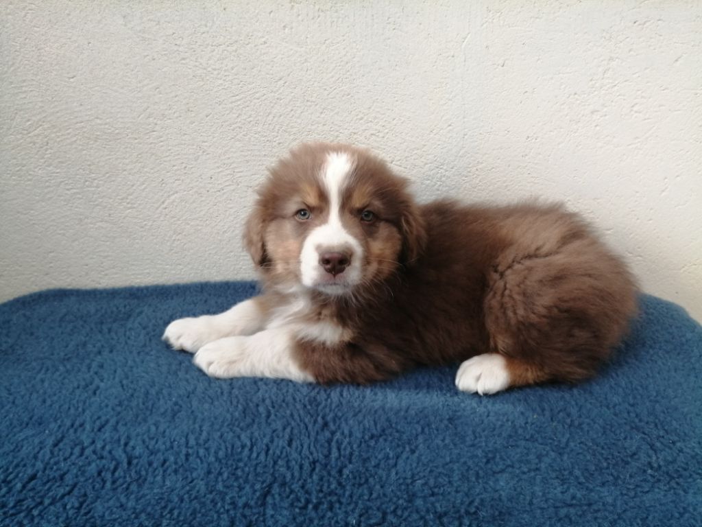 Chiot femelle robe rouge merle cuivre queue courte