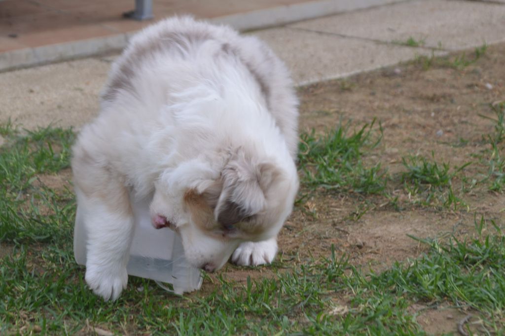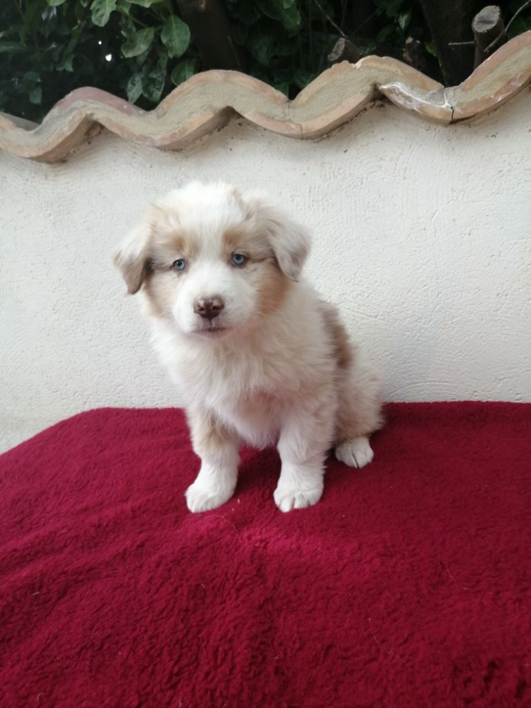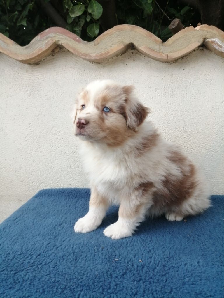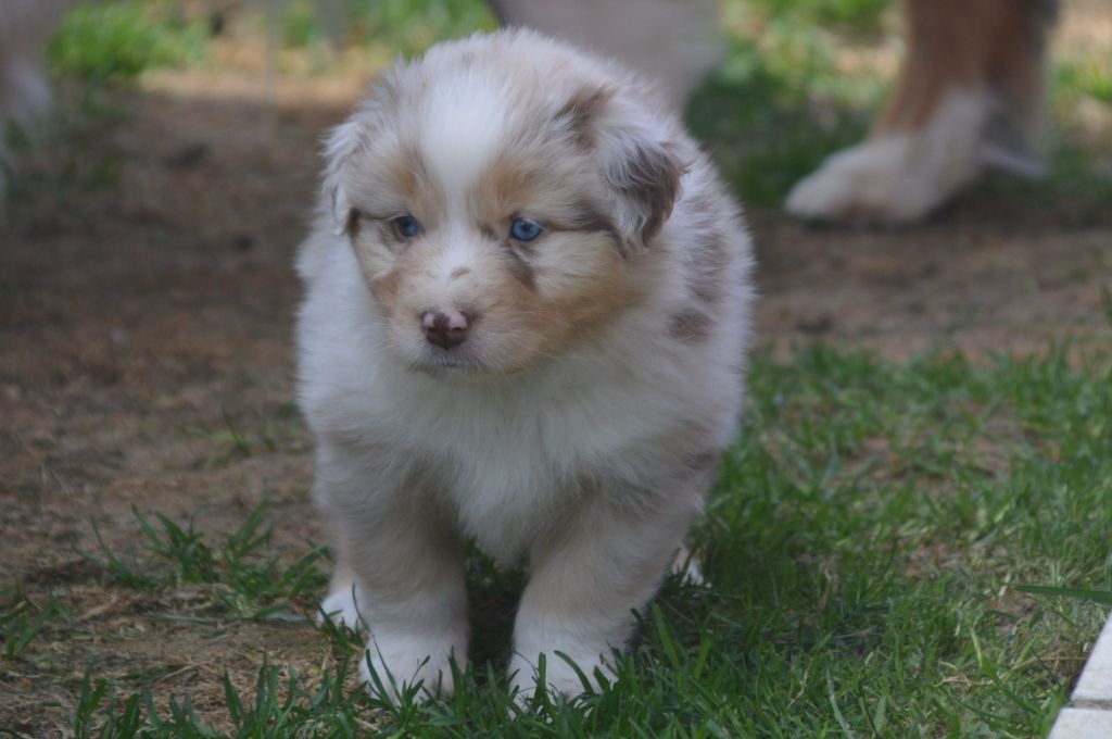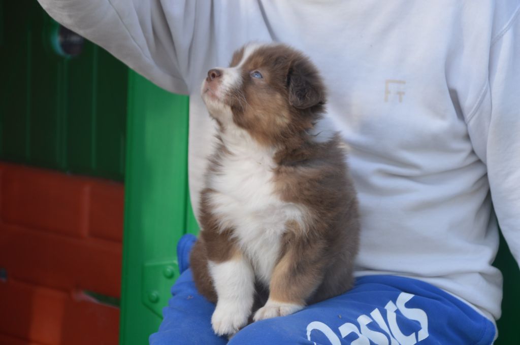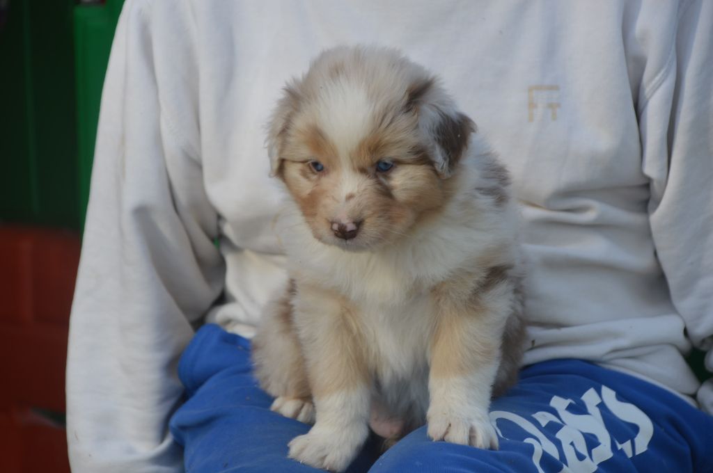 Chiot femelle robe rouge merle cuivre queue courte