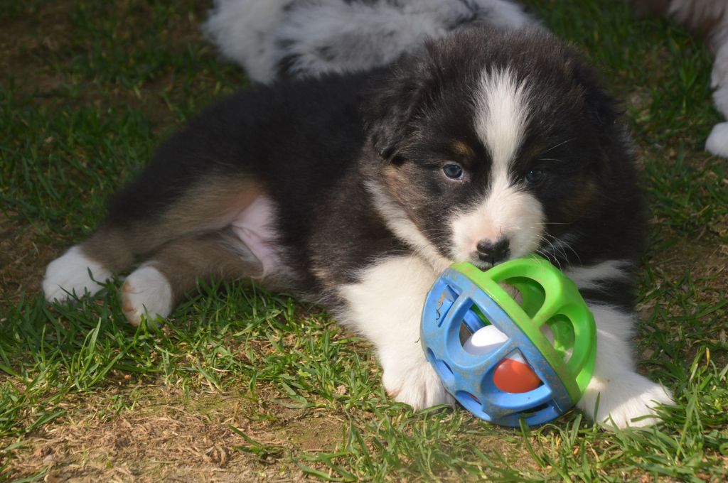 Chiot male robe Bleu merle cuivre queue courte