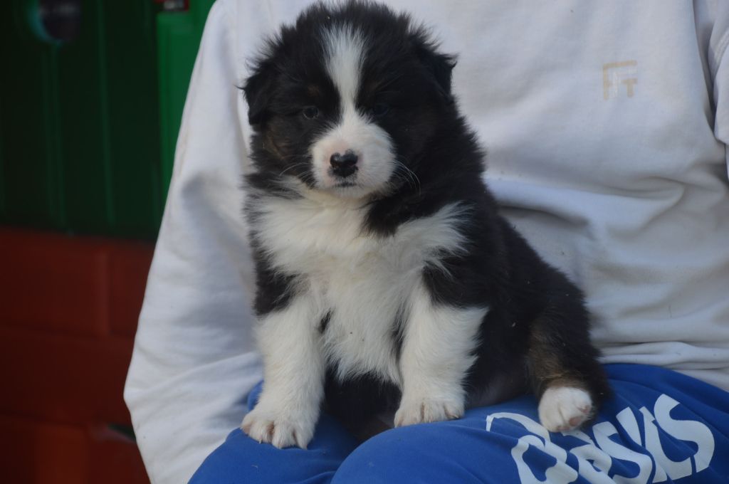 Chiot male robe Noire tricolore queue courte .