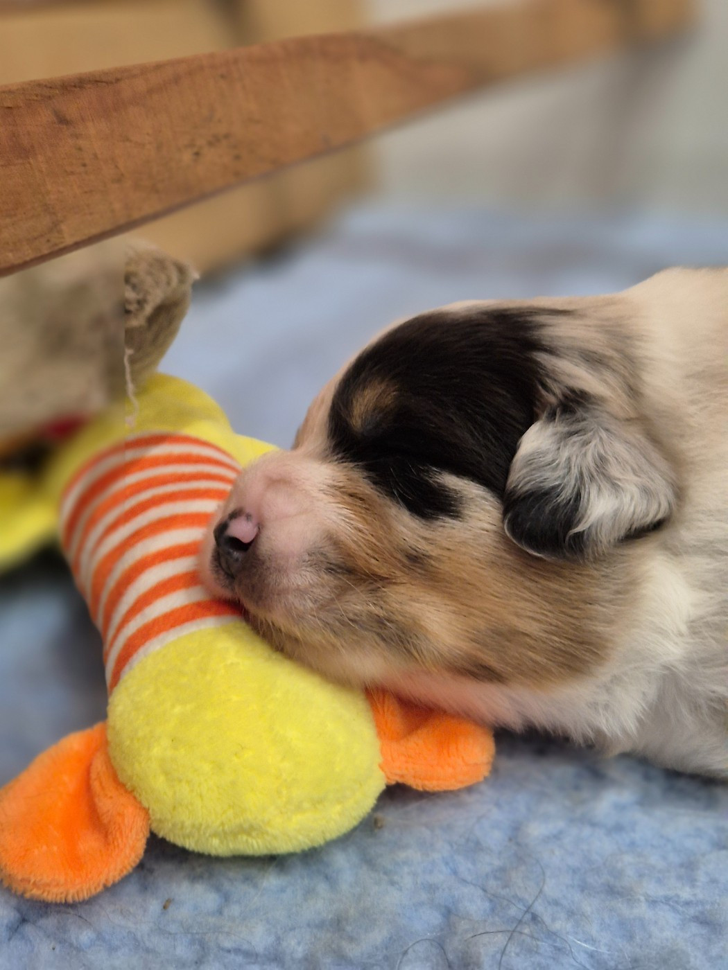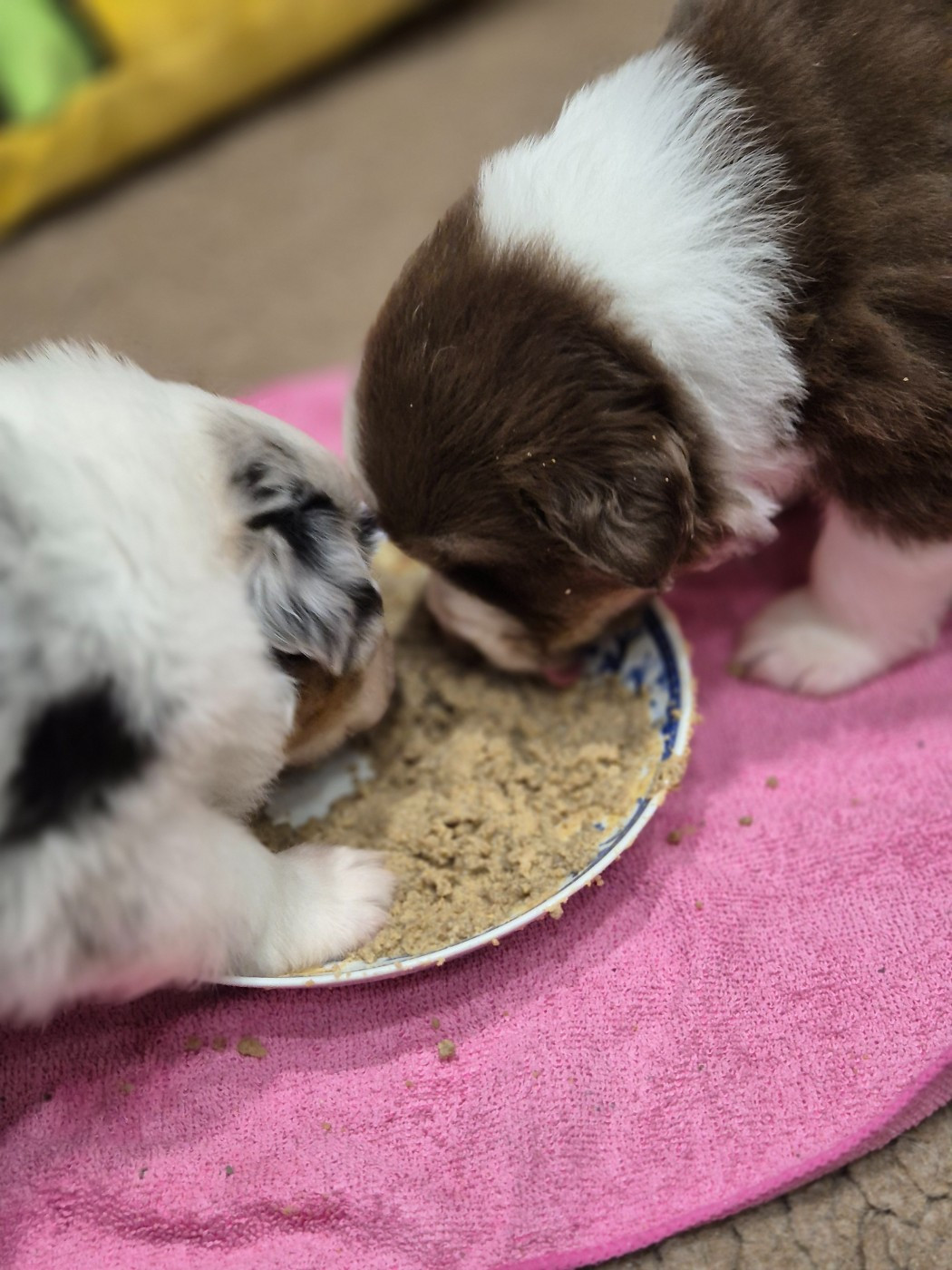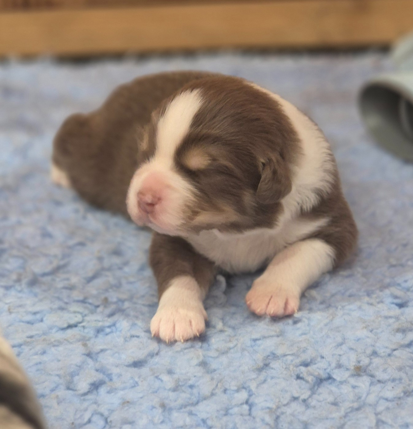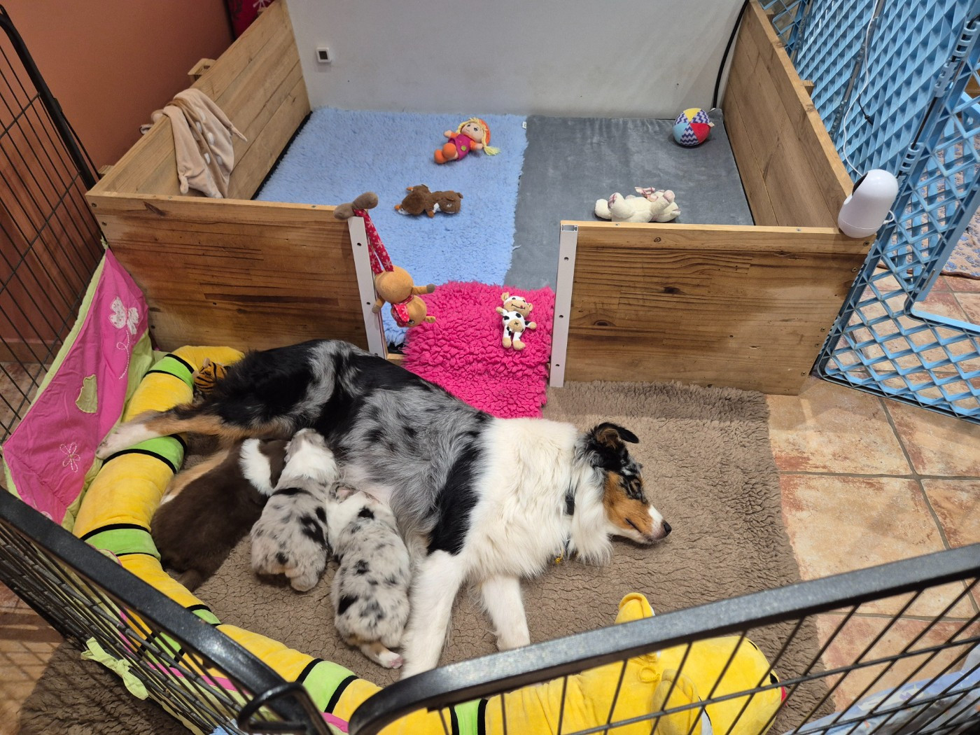 3 bébés tout ronds sont arrivés le 9 novembre !! Nous avons 1 mâle rouge tricolore et 2 femelles bleu merle !